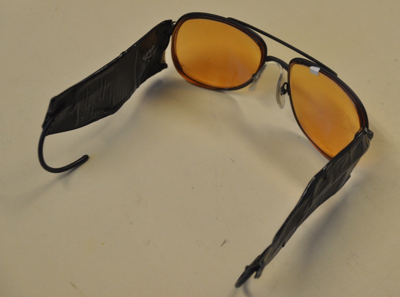 Suojalasit suojaavat silmiä kiekosta irtoavilta suurilta ja pieniltä paloilta sekä aseesta tulevilta ruutikaasuilta. Laseina voi käyttää myös tavallisia aurinkolaseja, jos ne eivät ole niin tummat, että ne haittaavat kiekon näkymistä. Yleisin ampujan lasien väri on punertava, joka tuo oranssin kiekon hyvin esiin taustasta, mutta pimeällä tai hämärällä ilmalla moni käyttää keltaisia laseja, jotka tuovat lisää valoa. Suojalaseja voi ostaa esimerkiksi rautakaupoista, hinta on parista eurosta ylöspäin. Optikkoliikkeistä saa tietoa vahvuuksilla varustetuista ampumalaseista. Ampumalasien käyttäminen Suomen ampumaurheiluliiton kisoissa on pakollista. Suojalasien käyttö silmien suojaamiseksi on erittäin tärkeää!